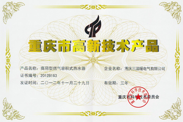 重慶三溫暖電氣有限公司創(chuàng)建于1995年,是專業(yè)從事中央熱水系統(tǒng)和廚衛(wèi)電器產(chǎn)品的集研發(fā)、制造、銷售為一體的現(xiàn)代化企業(yè),主營:燃氣容積式熱水器、商用熱水器的專業(yè)制造商,獲得了該行業(yè)國際標準--澳大利亞“AGA”認證并遠銷澳大利亞、新西蘭、印度、泰國、菲律賓、哥倫比亞、馬來西亞等國家和地區(qū)。